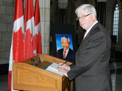 Mr. Tilson signed the book of condolence on the same day Prime Minister Harper led a delegation of former Prime Ministers and other Canadian dignitaries to the State Memorial Service for Mr. Mandela in Johannesburg, South Africa.