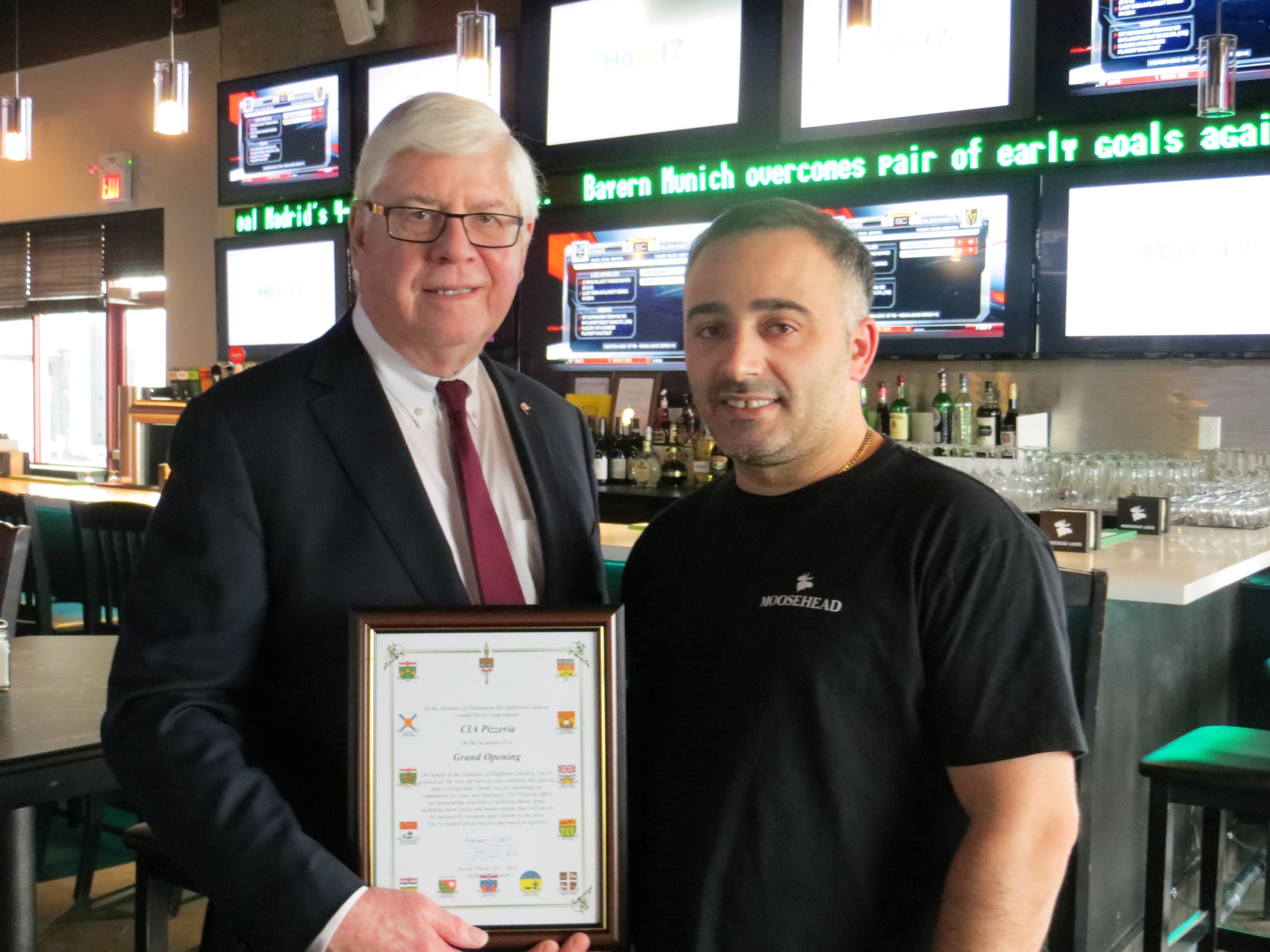 On April 12, 2018, David congratulated Aleksander Spaqi, owner of CIA Pizzeria, located in Bolton, on the restaurant’s Grand Opening.Â